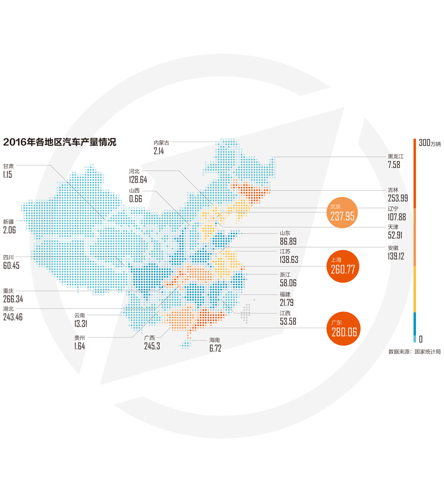 值得注意的是,在上述这些省市中,只要当地一两家车企一发力,就可能改变座次。******财经记者查阅广汽集团对外公布的数据发现,广汽乘用车2016年产量为38.11万辆,而2015年是18.89万辆,同比增长101.84%。这意味着广汽乘用车去年凭着GS4等SUV车型的热销对广东贡献了近一半的汽车产量增量。