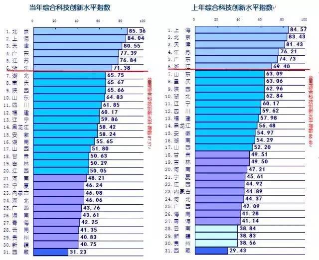由科技部战略院研究撰写的《中国区域科技创新评价报告2016-2017》从科技创新环境、科技活动投入、科技活动产出、高新技术产业化和科技促进经济社会发展5个方面设置一级指标,选取12个二级指标和38个三级指标组成了指标体系,对全国及31个省、直辖市、自治区科技创新水平进行了分析比较。