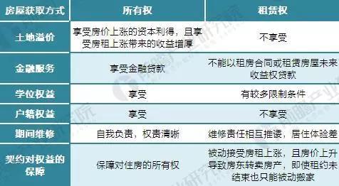 传统的住房市场中,自有产权住房与租赁住房泾渭分明,二者面向群体特质区分也十分明晰,二者拥有权力有明显区别,为国内的买房行为赋予了“更多的目的”。其中租赁权益在金融服务和土地溢价方面差别最为明显,即租房不能享受金融服务,也无法承载土地溢价;另外,房屋所有权与某些公共服务权益相定,导致公共服务的享受权利反映为房屋买卖的市场溢价。因此,对于大多数人来说,拥有至少一套自有住房属于刚性需求。