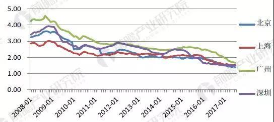 图表2:一线城市住宅租金回报率逐年下降