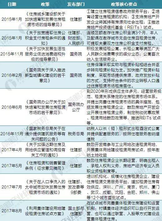 图表3:截至2017年长租公寓相关政策汇总