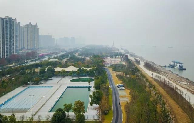 这是2017年12月27日在湖北省武汉市青山区拍摄的综合整治后的青山堤防江滩。
