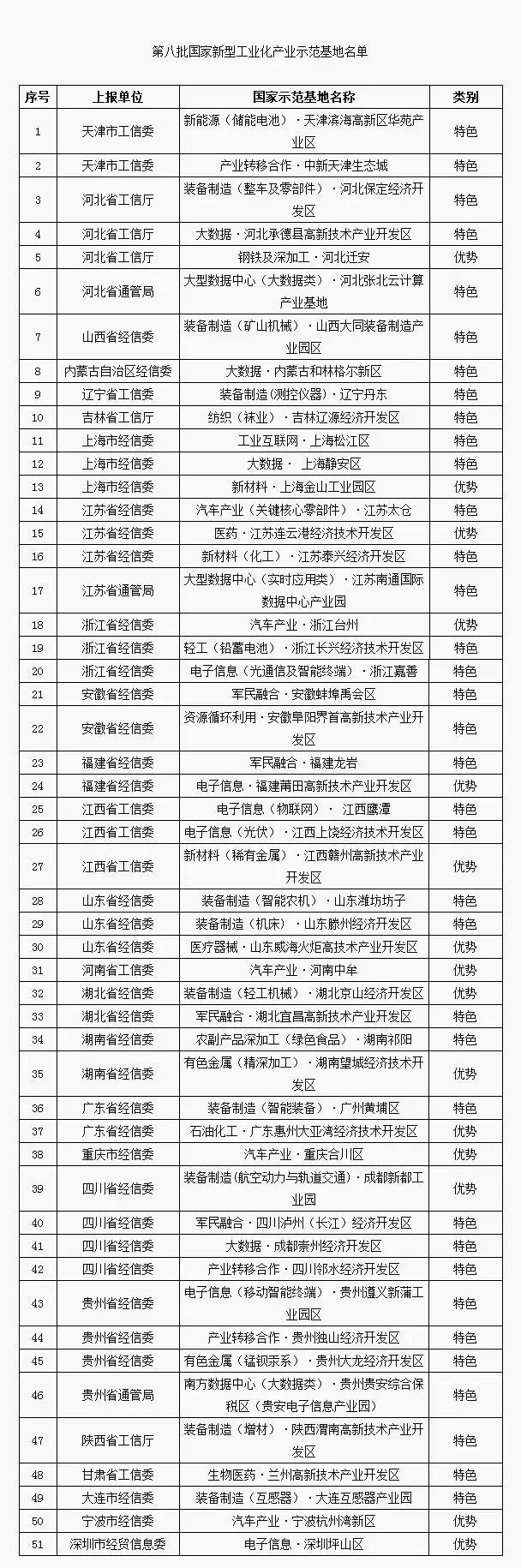 工业和信息化部关于公布第八批国家新型工业化产业示范基地名单的通知